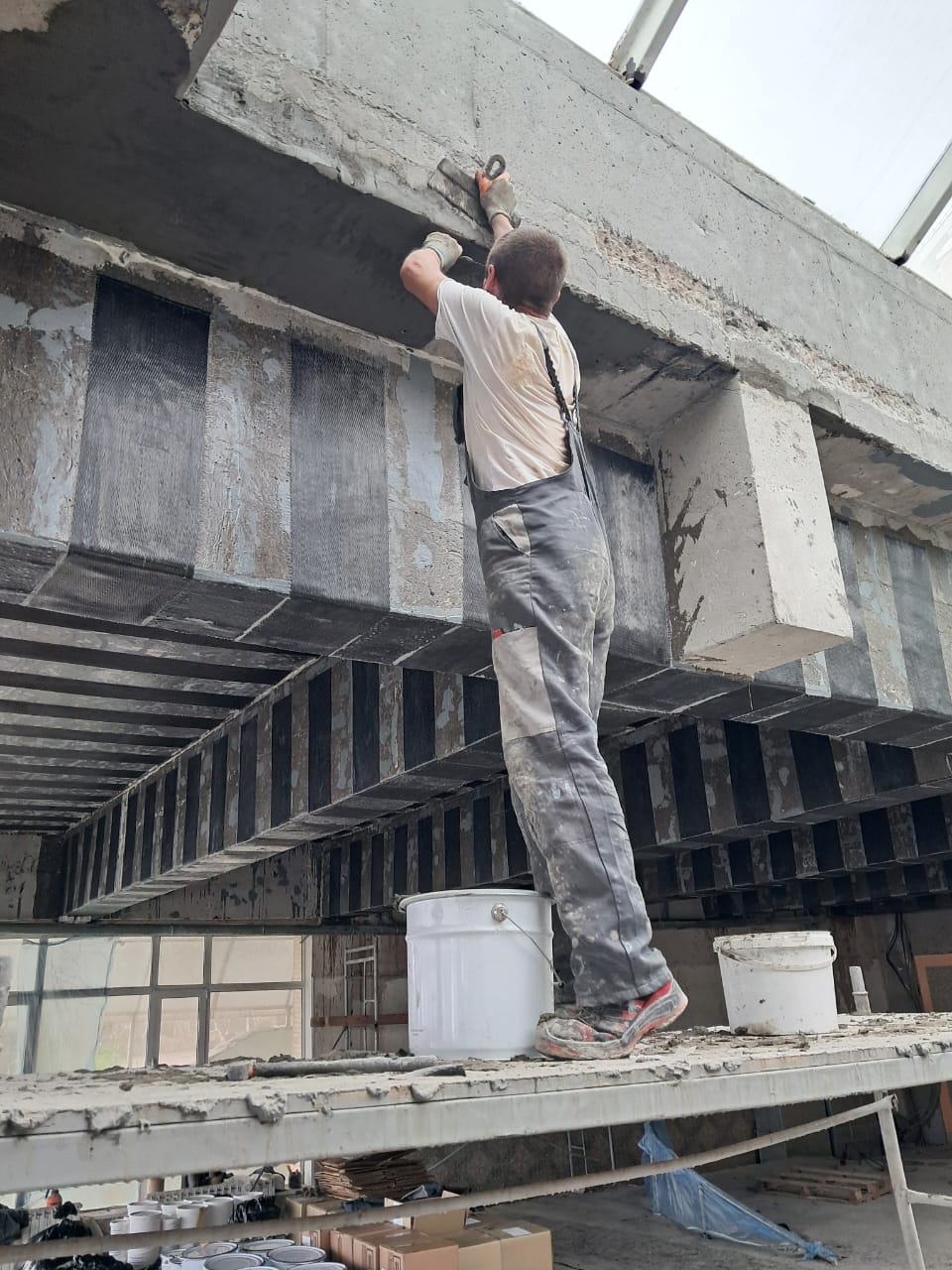 Проведение комплекса исследований, устранение ржавчины и разрушений жб конструкций, усиление композитными материалами, инъектирование эпоксидными смолами